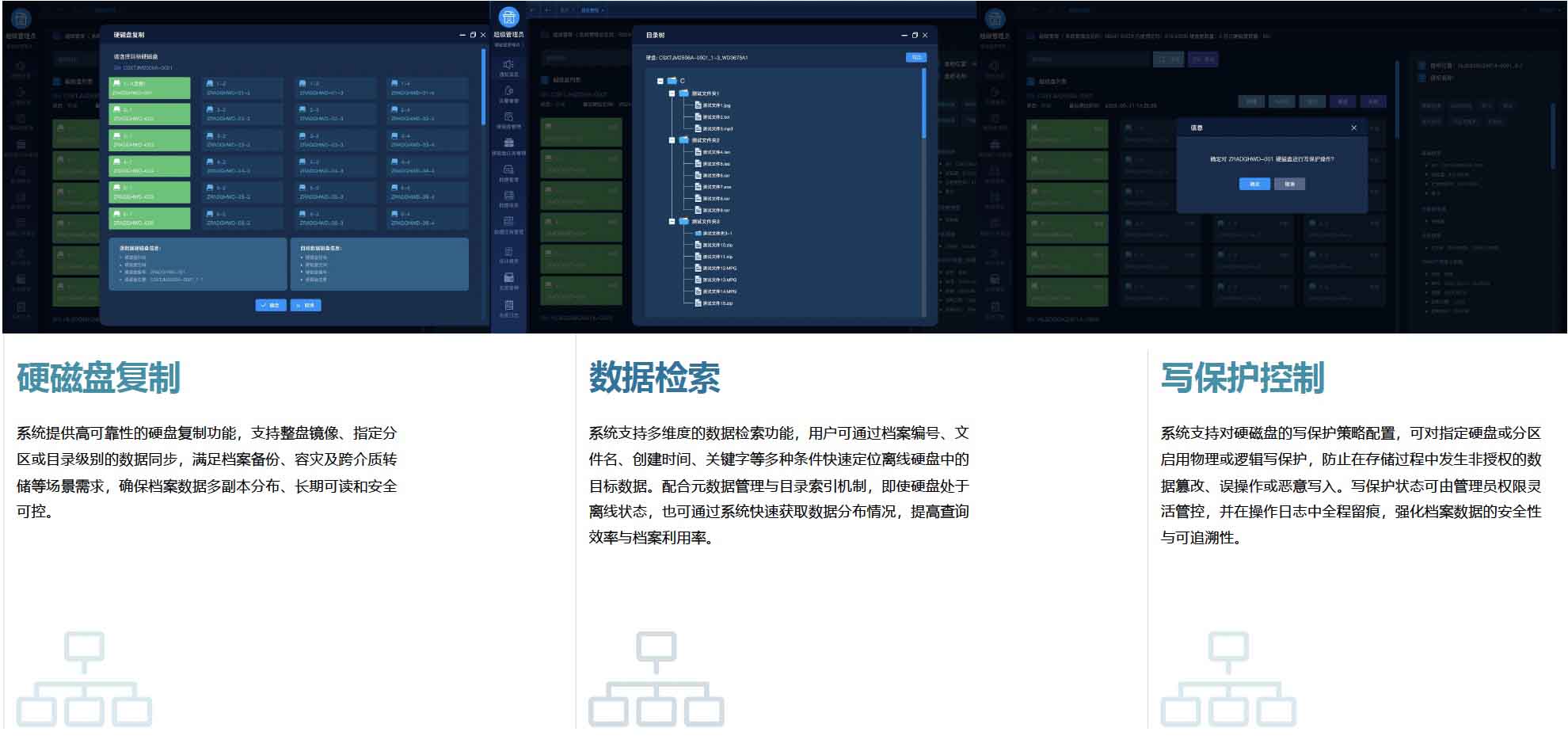 數(shù)據(jù)硬磁盤智能離線存管系統(tǒng)是一款面向高安全需求的數(shù)據(jù)存儲解決方案,集智能存儲、安全防護和全流程管控于一體。系統(tǒng)通過智能存管柜與管理平臺,實現(xiàn)硬盤的入庫、檢測、備份、出庫全生命周期管理,支持上電檢測、健康監(jiān)測、自動備份和異常告警,確保存儲數(shù)據(jù)長期安全可用,廣泛適用于政府與企事業(yè)單位的重要數(shù)據(jù)存管需求。
