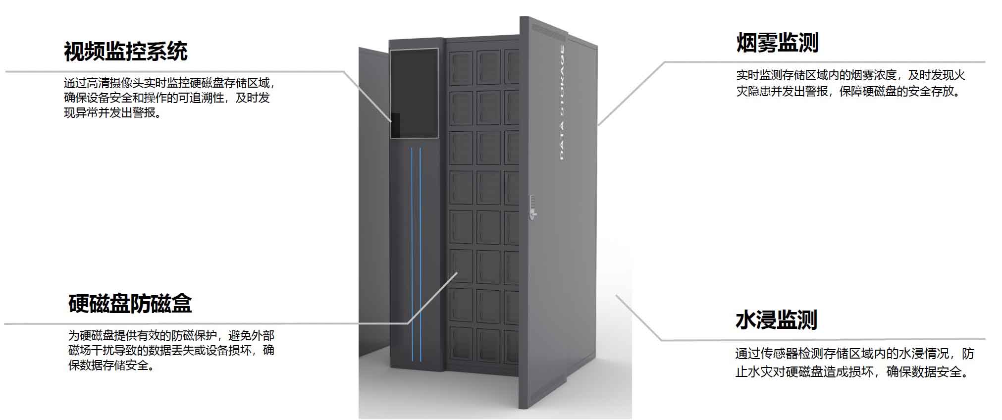 智能數(shù)據(jù)硬磁盤離線存管系統(tǒng)是一套集智能存儲、安全管理、全過程監(jiān)控于一體的綜合性解決方案,專為數(shù)據(jù)硬磁盤的長期存儲與安全管控設計。系統(tǒng)核心由【智能硬磁盤存管柜】、【數(shù)據(jù)硬磁盤管理系統(tǒng)】、【硬磁盤管理與檢測】模塊組成,支持高精度檢測、溫濕度與防盜監(jiān)測、UPS供電保障,并通過標簽識別、數(shù)據(jù)寫保護、遷移恢復、定期檢測等功能,實現(xiàn)硬磁盤的全生命周期管理。此外,系統(tǒng)具備高度可擴展性,可集成視頻監(jiān)控、環(huán)境監(jiān)測、防磁保護等附加模塊,進一步增強存管安全性與環(huán)境適應性。該系統(tǒng)涵蓋硬磁盤離線存管的完整業(yè)務流程,并提供周期性加電檢測、數(shù)據(jù)完整性檢測、S.M.A.R.T.狀態(tài)監(jiān)控,確保存儲數(shù)據(jù)的長期可用性和安全性。通過智能化管理手段,系統(tǒng)實現(xiàn)了對數(shù)據(jù)硬磁盤的精細化、可視化監(jiān)管,有效降低因物理存儲損壞或管理疏漏導致的數(shù)據(jù)丟失風險,適用于政府機構、企事業(yè)單位及其他高安全級別的數(shù)據(jù)存管需求。